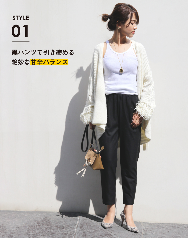 どんなテイストにも寄り添ってくれる頼もしい「黒パンツ」。