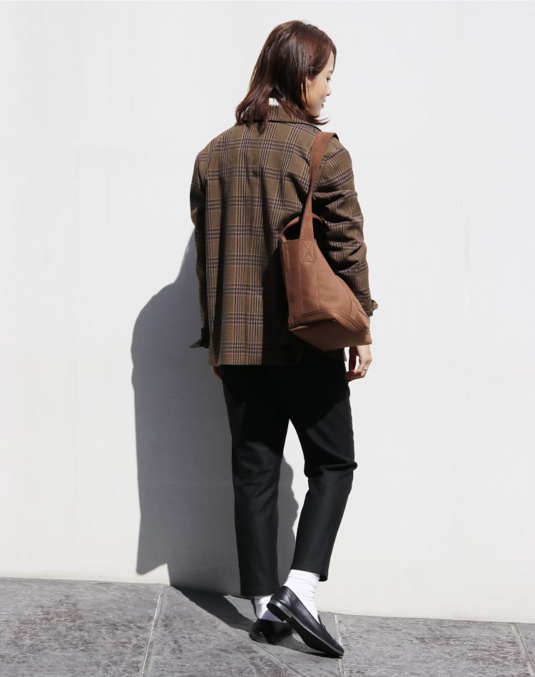 あえてカジュアルなzattuのバッグでラフな雰囲気もプラス。