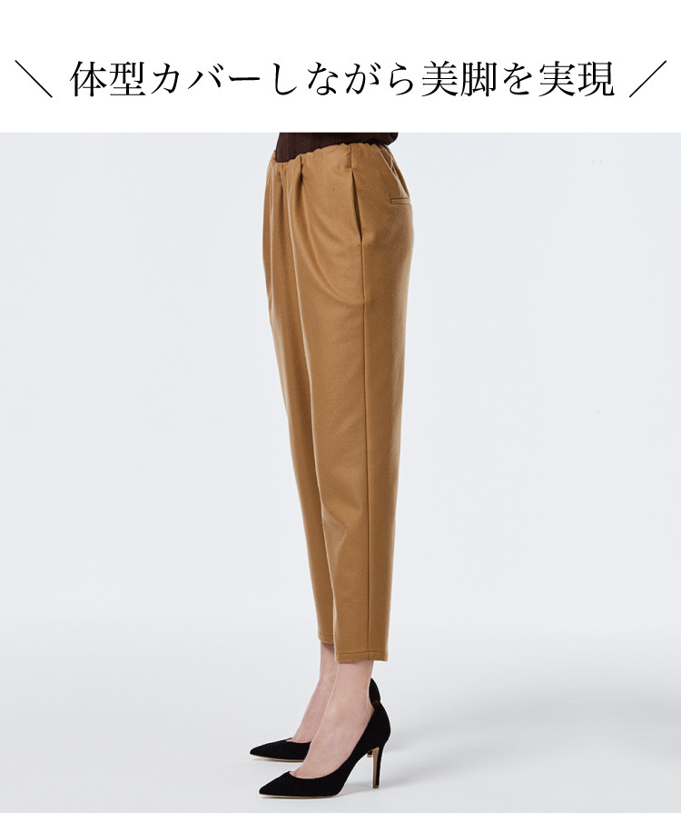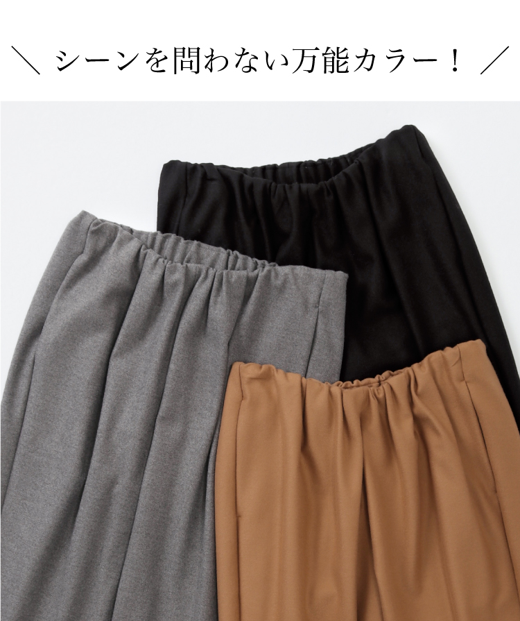 細くテーパードしたすっくりシルエットながらも、気になる体のラインを拾わず足を美しく見せてくれる絶妙なシルエット。