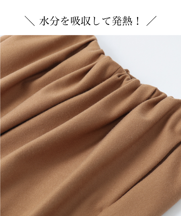 水分を吸収して発熱する機能性をもつ発熱保温機能「ソフトサーモ」素材を使用しているのでとっても暖か。