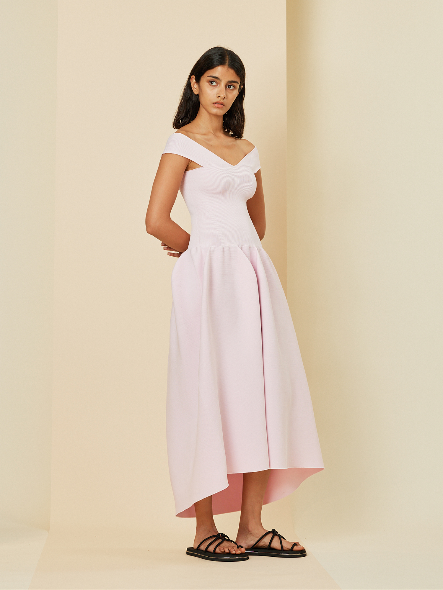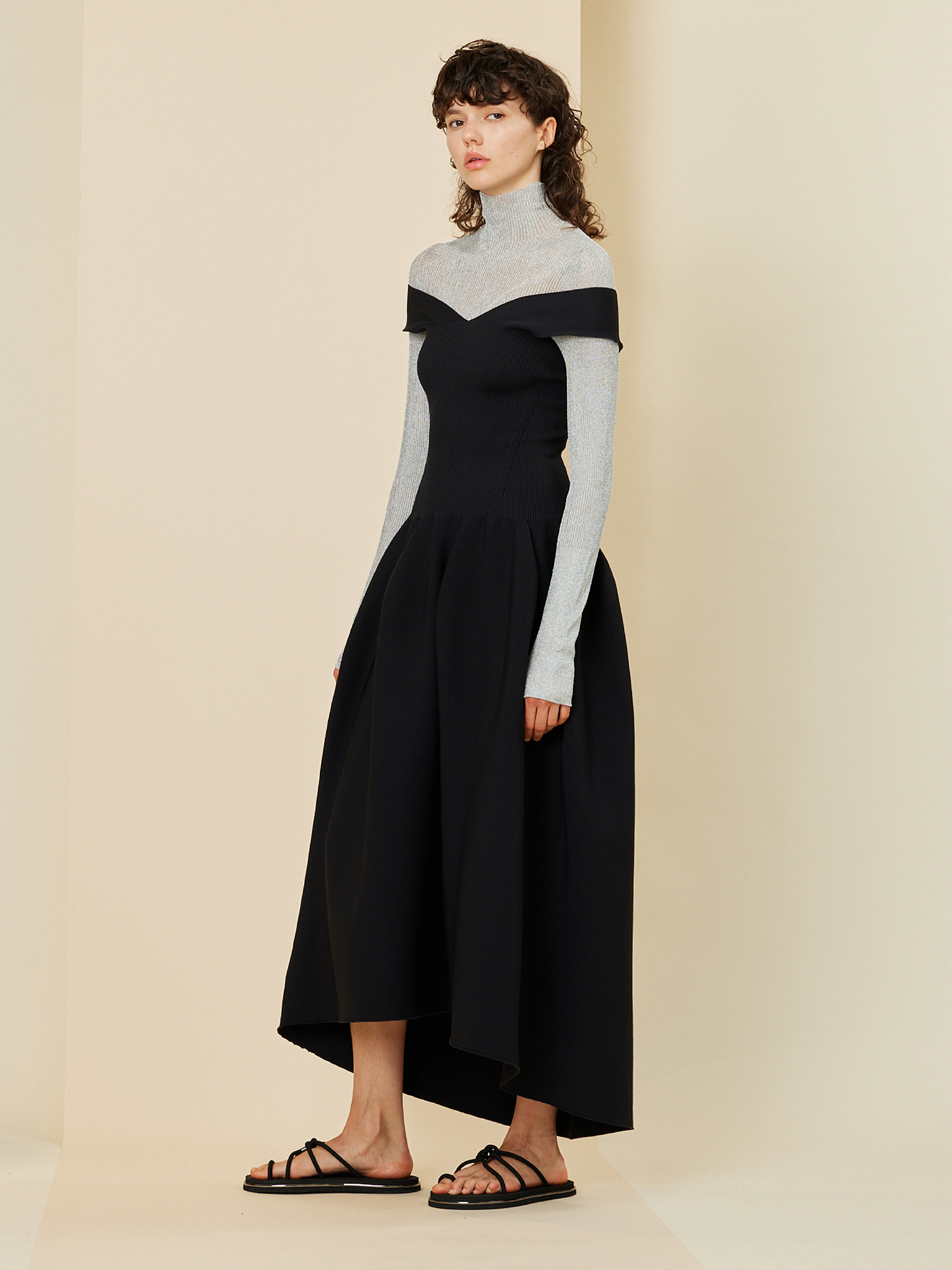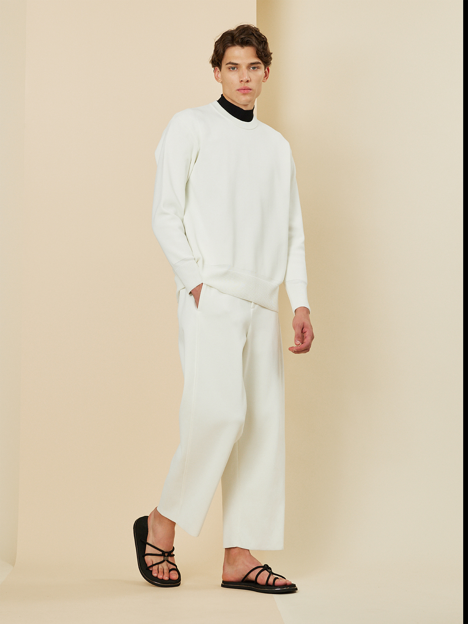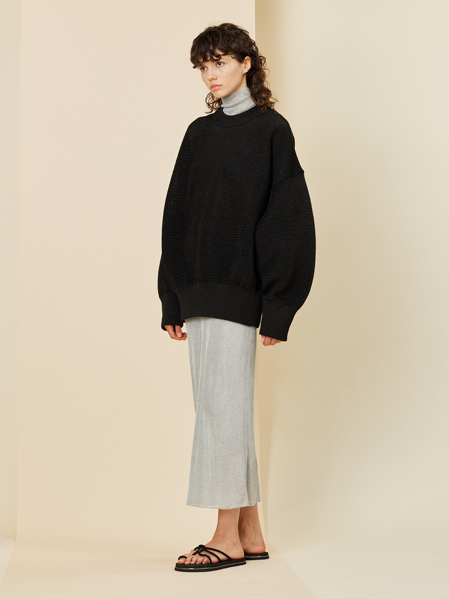 コンピューター制御により生み出されるCFCLのアイテムも、人々が袖を通すことによって初めて衣服として完成します。全自動の機械も、プログラミングも、プラスチック廃棄物から生まれる化学繊維も人の手によって生み出された集積です。地球の持つ柔らかな色彩と、ここではない世界を感じさせるきらめきを放つマテリアル。そして、人々がみる新しい夢と手仕事の重なりが混在した、次なる場所の予感をはらむ衣服をknit-wareとして提示します。