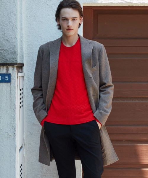 正統派な形のコートこそ、織り柄を少し加えることで、オンオフ共に活躍するアイテムに。
