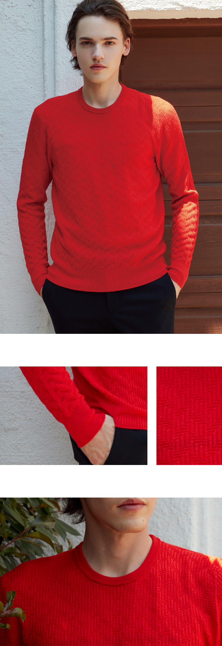 単色使いの編地デザインは、インナーとしてワードローブを豊かにする1枚。
