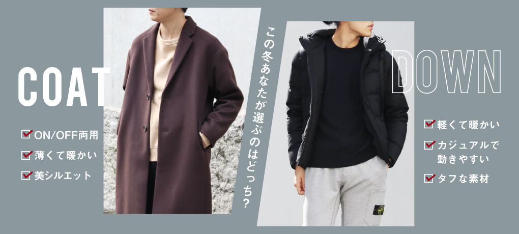 今回はコート派とダウン派にわけて、今季おすすめのアイテムをご紹介します!!