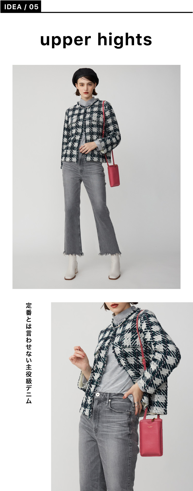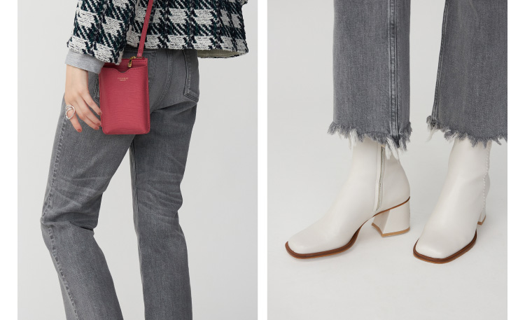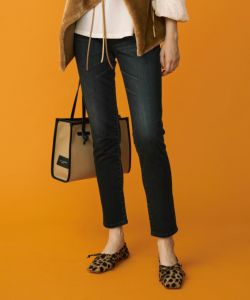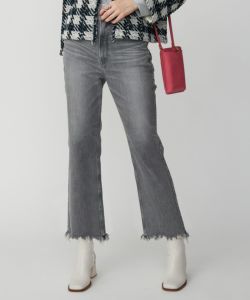 ブランドの人気モデル“マロリー”は裾にデストロイ加工を施しエッジを効かせた。クロップドフレアなシルエットは、ボディラインを美しく演出する。