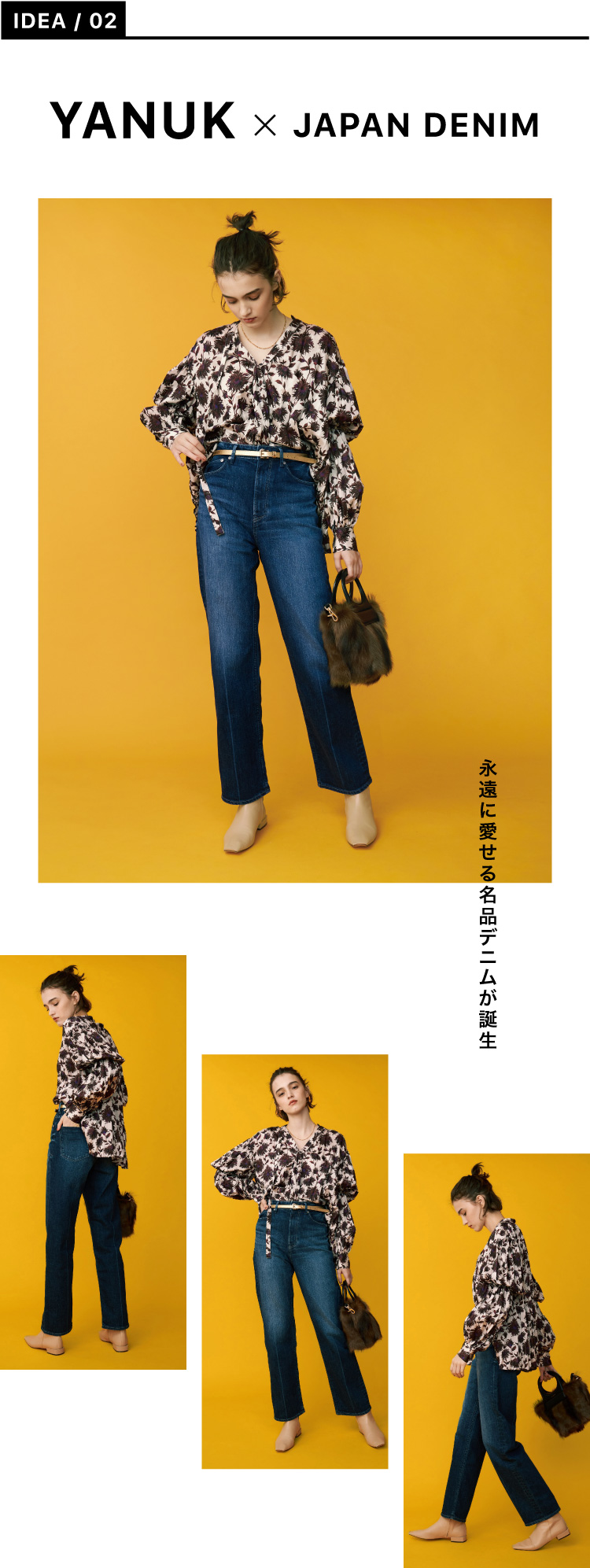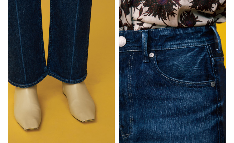 〈ヤヌーク〉で人気モデル“レア”を〈ジャパンデニム 〉仕様で完全別注。色を落としすぎず、上品に仕上げ、ブラウススタイルなどキレイめスタイリングにもマッチ。