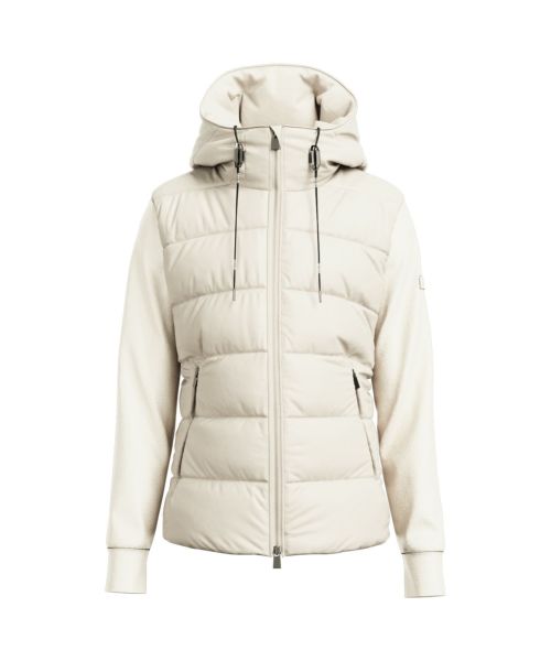 TATRAS(タトラス)の身頃はダウン、袖はウールのフード一体型コンビネーションジャケット。ダウンの膨らみが程よく存在感を主張し、着るだけでスタイリッシュなシルエットが完成する一着です。