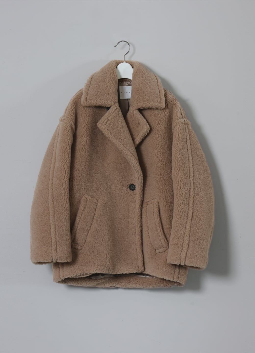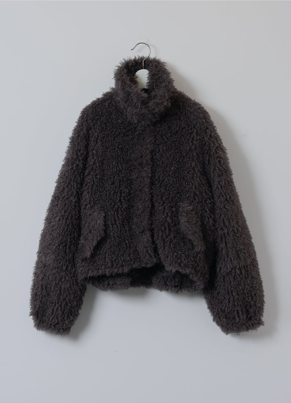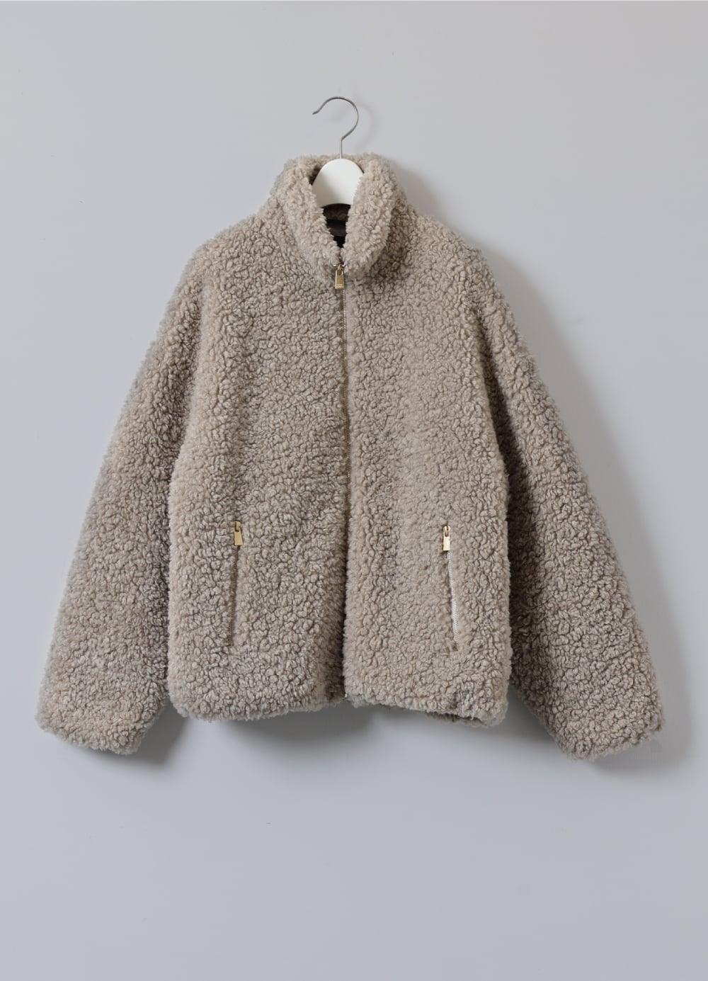 ウールのような質感のポリエステル糸を使用した、表情のあるシープ調ボアブルゾン。