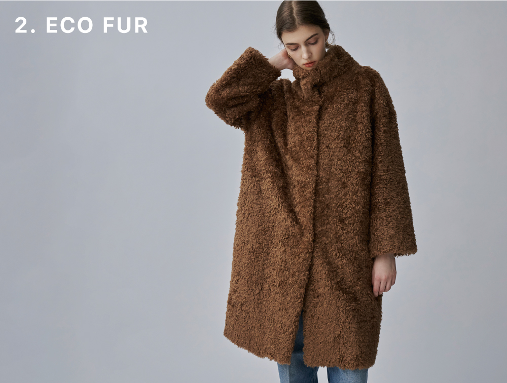発色の良さと、巻き毛タッチのふわふわした素材が特徴。ボリューム感と相反して、非常に軽い着心地。