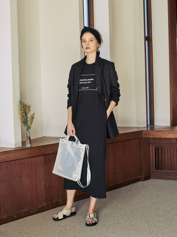beautiful peopleのタグ型ロゴがコーディネートのポイントになるカットワンピース。ストレートなシルエットで、衿の詰まったクルーネックが大人っぽい印象に。しっとりとしたスビンと、ハリのあるピマコットンをブレンドした光沢感が美しいカット素材シリーズ。1枚で着用しても透けにくい程良い肉感が特徴です。パリゴ限定デザイン。