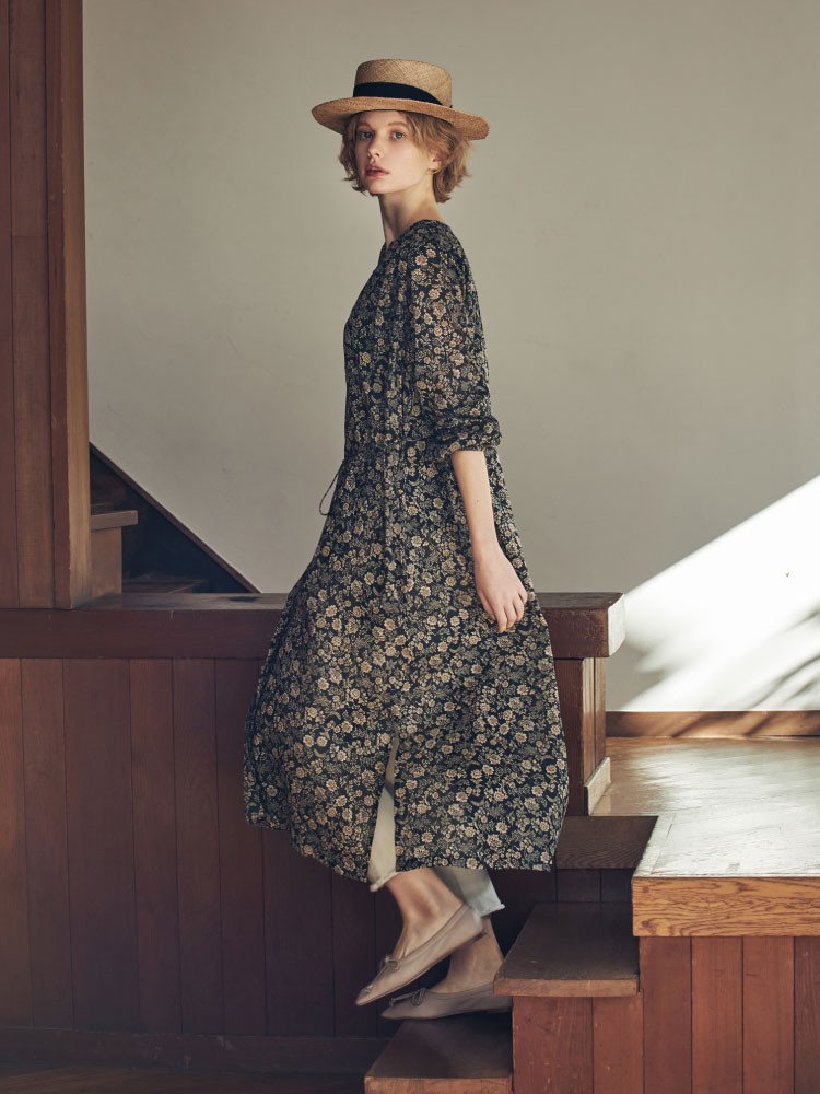 ヴィンテージの生地からインスピレーションを得たヌキテパオリジナル生地を採用したワンピース。マルチストライプと、雰囲気の異なるフラワープリントの絶妙なカラーリングが目を惹きます。風通しが良く、着心地抜群のコットンボイルを使用しています。