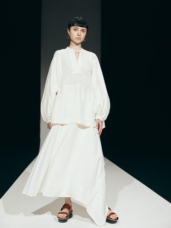 現代芸術家・杉本博司氏+榊田倫之 / 新素材研究所の著書[Old is New] にインスパイアされた今シーズン。彼の作品から感じた、日本の伝統的な表現にある「見立て」という行為。ファッションにおいて中世、近世に用いられた素材や技法、考えをインスピレーションに現代的に“見立て”(再解釈) 別の新たな服へと落とし込んでいます。