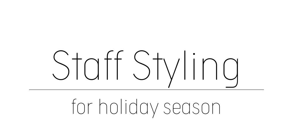 ホリデーシーズンの着こなしは、スタッフの着こなしを参考にしてみてくださいね。