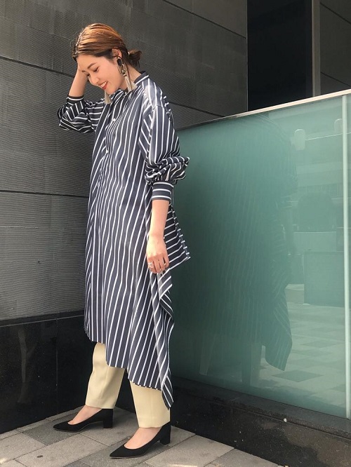 ルーズシルエットはパンツとのレイヤードでモードに楽しんで。