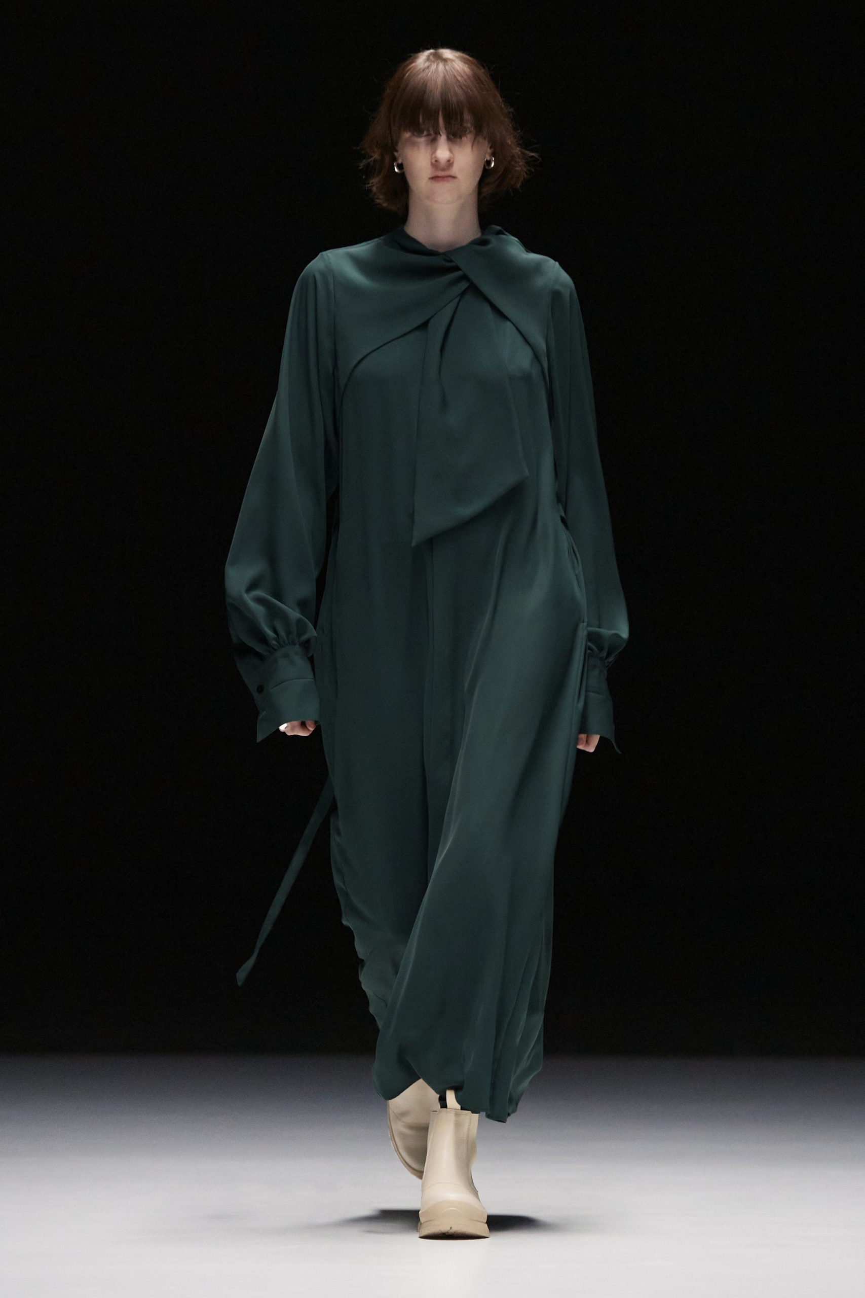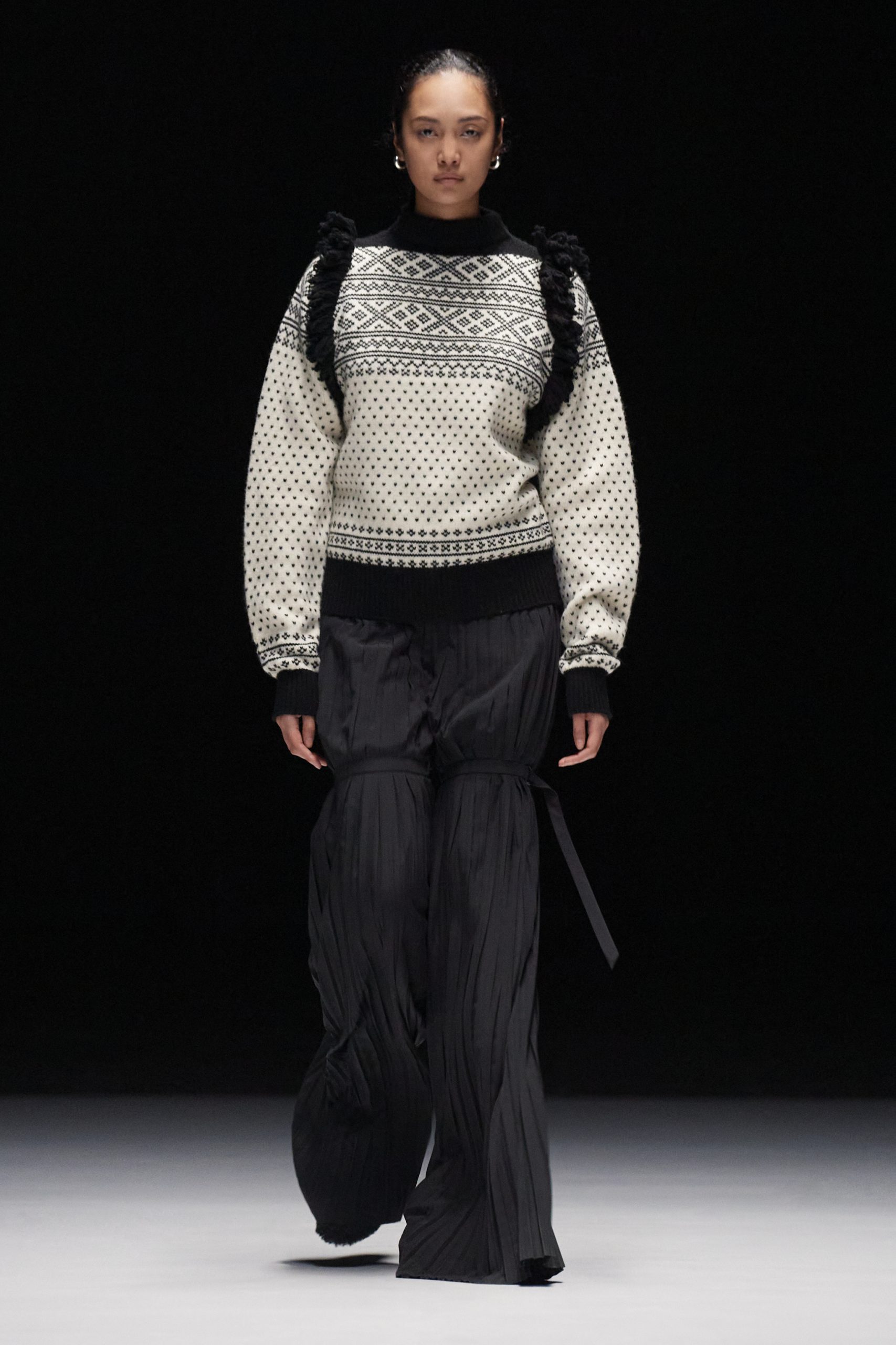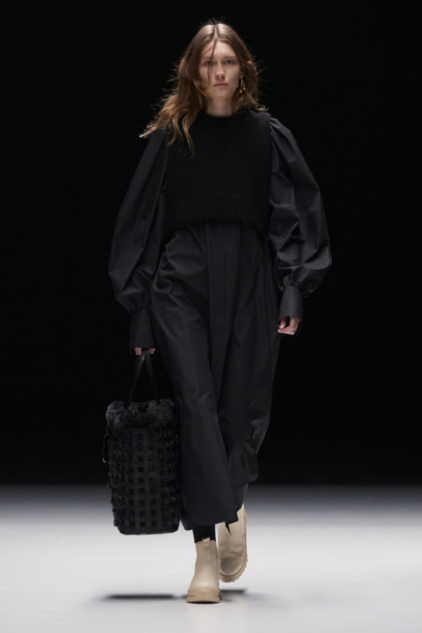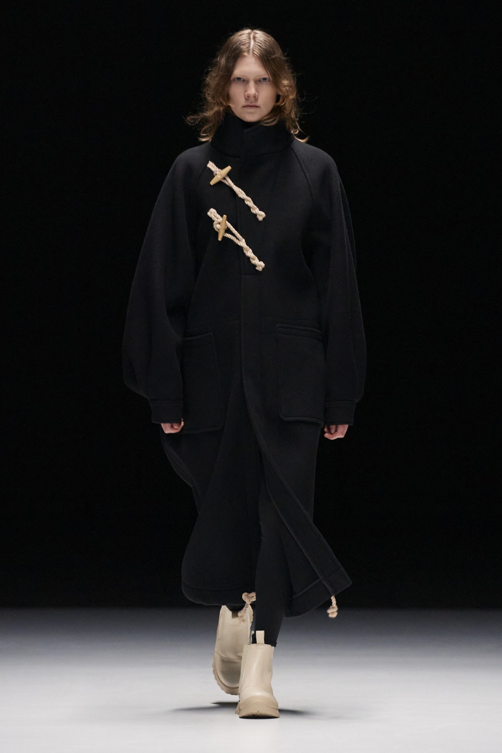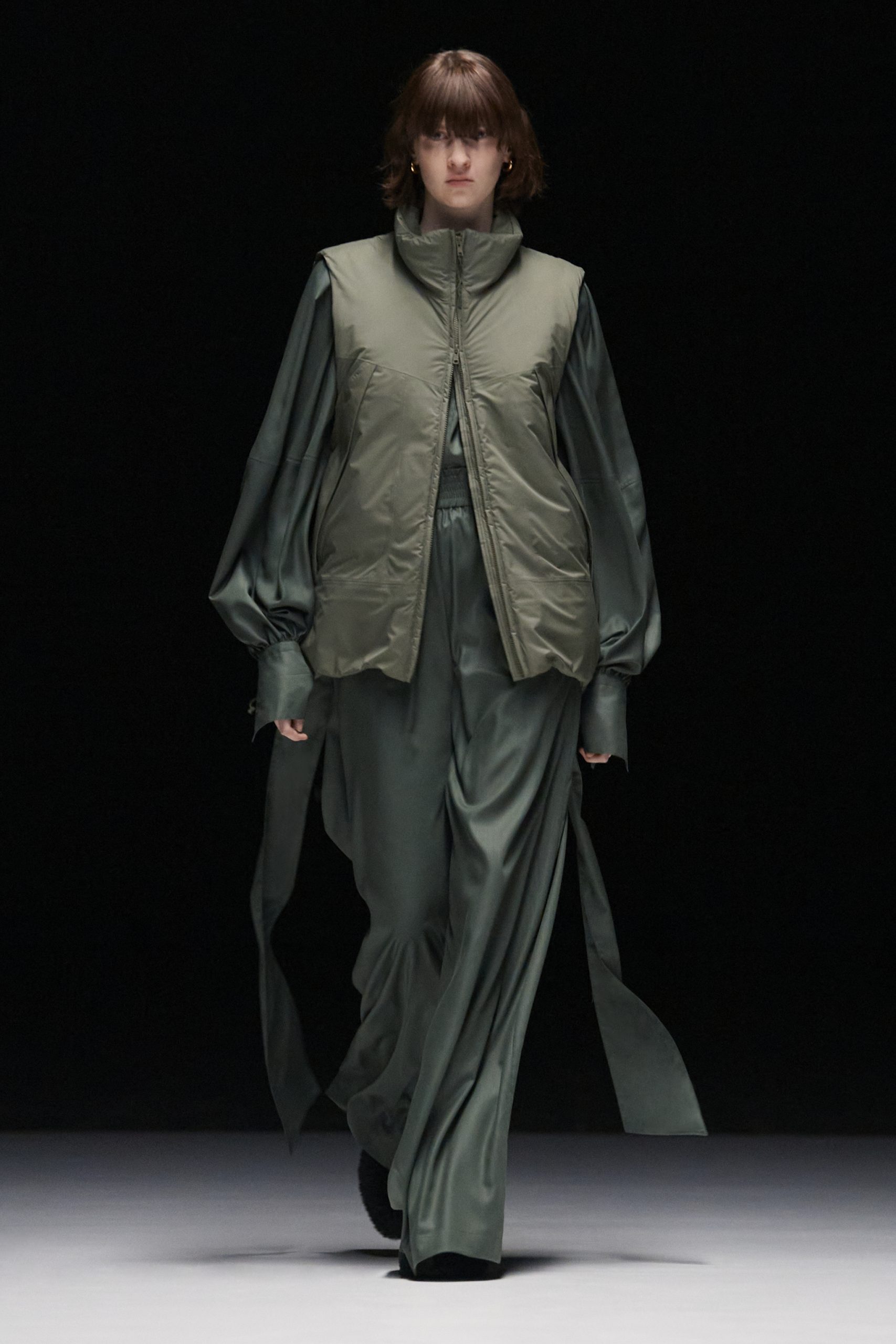 ミリタリーウェアやヴィンテージウェアをインスピレーション源に、服飾史のヘリテージを再構築している〈ハイク〉。今季は、オールブラックのコーディネートや、ドラマティックなボウタイを筆頭にしたリボンやテープ使いのテクニックなど、フォーマル要素が随所に散りばめられたコレクション。