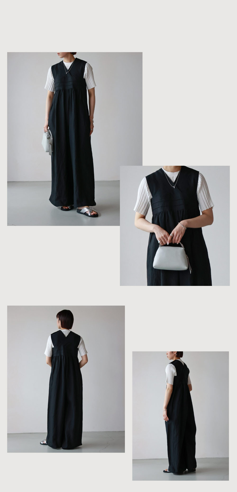 HYKE 定番人気のワンピースがジャンプスーツとして新登場。綺麗めながらソフトな風合いの素材が、ややリラックス感を演出。フラットサンダルとシンプルなバッグを合わせれば、カジュアル過ぎないオフ感のあるスタイリングが完成。デイリーにはもちろん、リゾートシーンにもさらっと一枚で様になる、主役級アイテム。