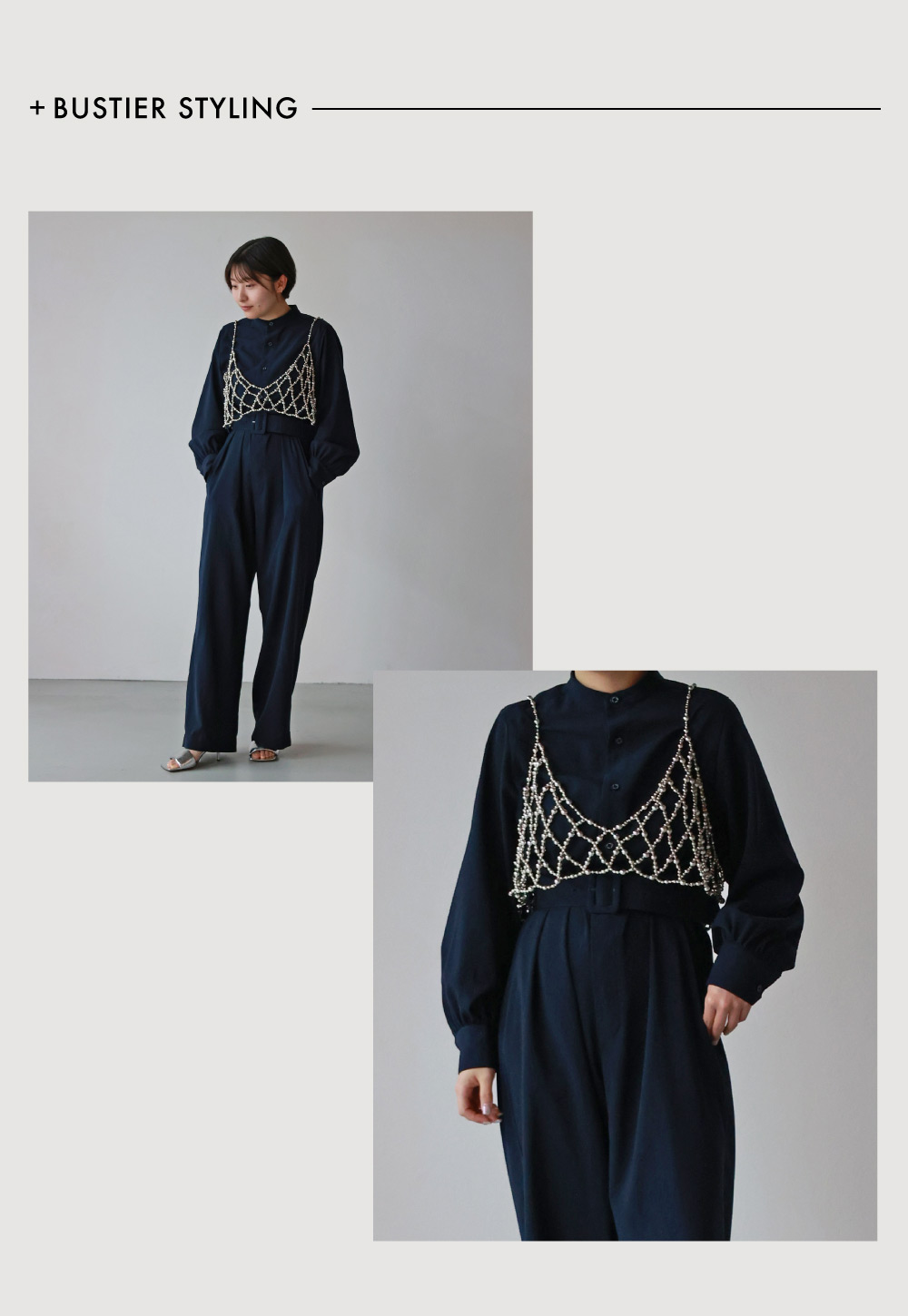 昨シーズンより定番展開されているジャンプスーツ。素材は人気ストレッチシリーズを採用。トップス部分はバンドカラーのシャツデザインで、ミニマルな印象。ウエストには同素材のベルト付き。ベルトを取ってラフに着ても、ベルトでメリハリをつけても◎。デニムジャケットと合わせれば、モードな印象からカジュアル感のあるスタイリングに変化。着方次第で様々な着こなしが叶う万能アイテムは、デイリーにジャンプスーツを活躍させたい人におすすめ。