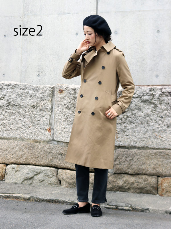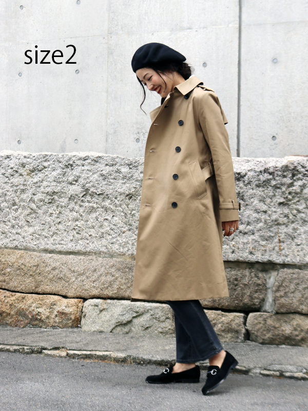 すっきりとしたシルエットと、深みのあるベージュカラーが本当に美しく、名品と呼ぶのにふわさわしい逸品です。コットン/ポリエステル、高密度サージ織りの上質な生地を使用しているので一生ものとして末永く愛用できるところも魅力的。