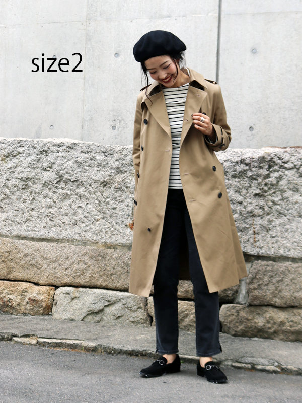 ついついコートに着られている感じになってしまいますが、このHYKEのトレンチコートは肩幅が狭いシルエットなので、そんな私にもピッタリ!
