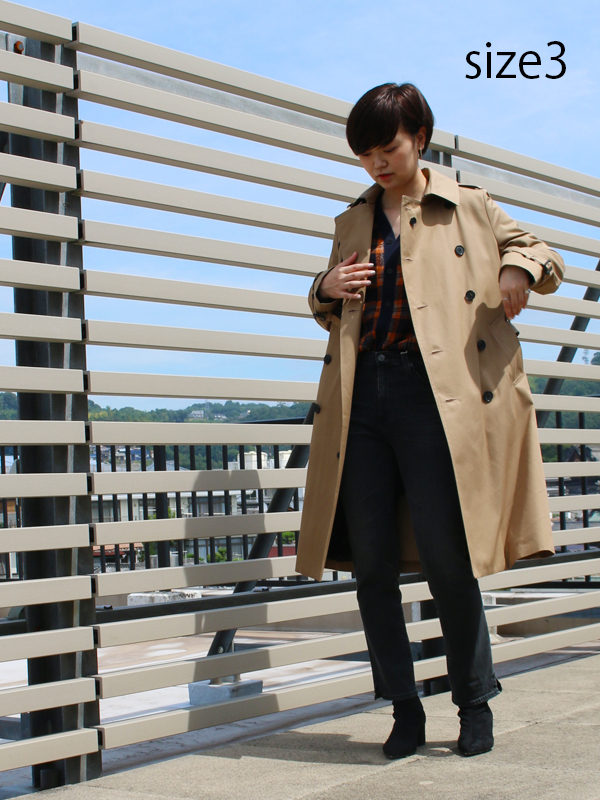 サイズ3は、ひざが隠れるくらいの着丈で、よりメンズライクでこなれた雰囲気に!