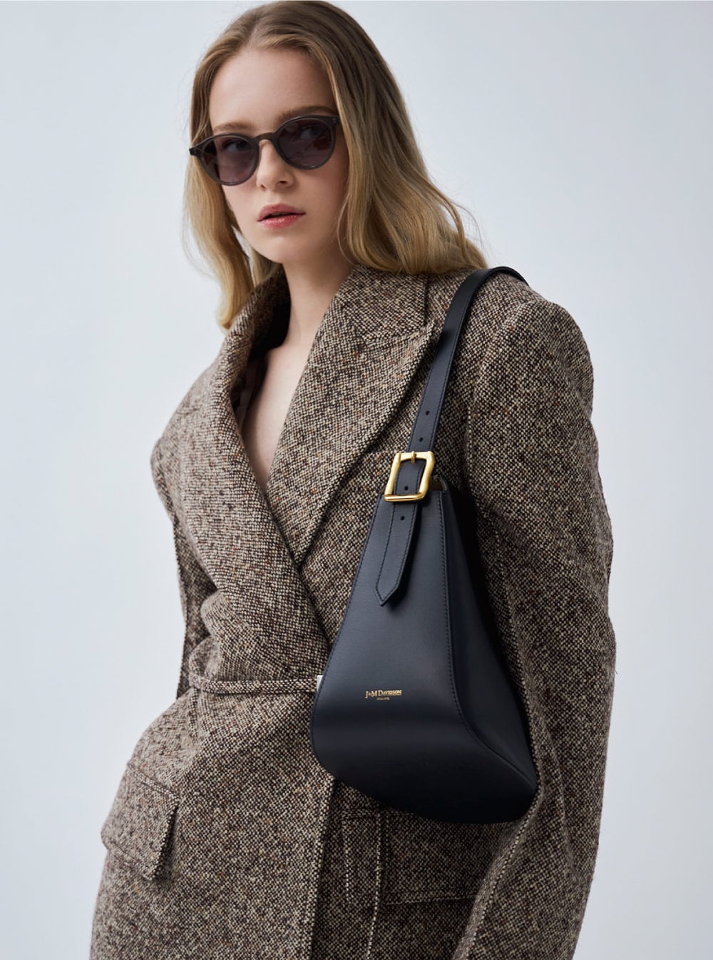伝統的な矢筒からインスパイアされたショルダーバッグ、“クイバーバケット”。極力シームを省くことで美しい曲線を描き、独特なシルエットを生み出している。無駄を省いたシンプルなボディに、ベルトのアーカイブから復活したロゴ入りバックルがアクセントに。シングルベルトストラップは長さ調整が可能で、ハンドバッグとショルダーバッグの2WAY仕様。
