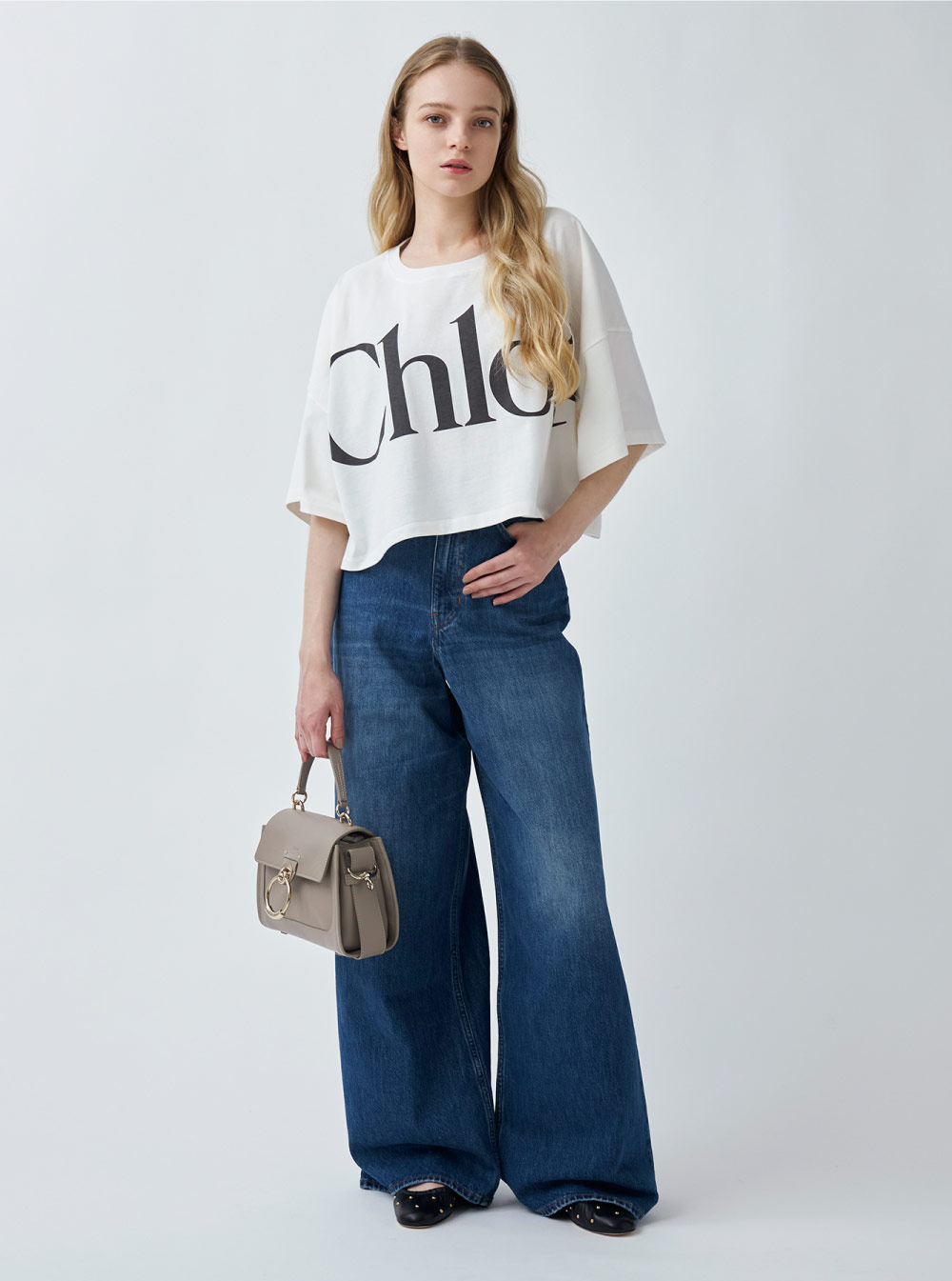 今シーズンから新たなクリエイティブディレクターが就任し、刷新されたロゴを大胆にレイアウトしたTシャツ。70年代のカール・ラガーフェルド時代のデザインを再解釈し、シックで洗練された 雰囲気になったシャープなロゴが新生〈クロエ〉をアピール。