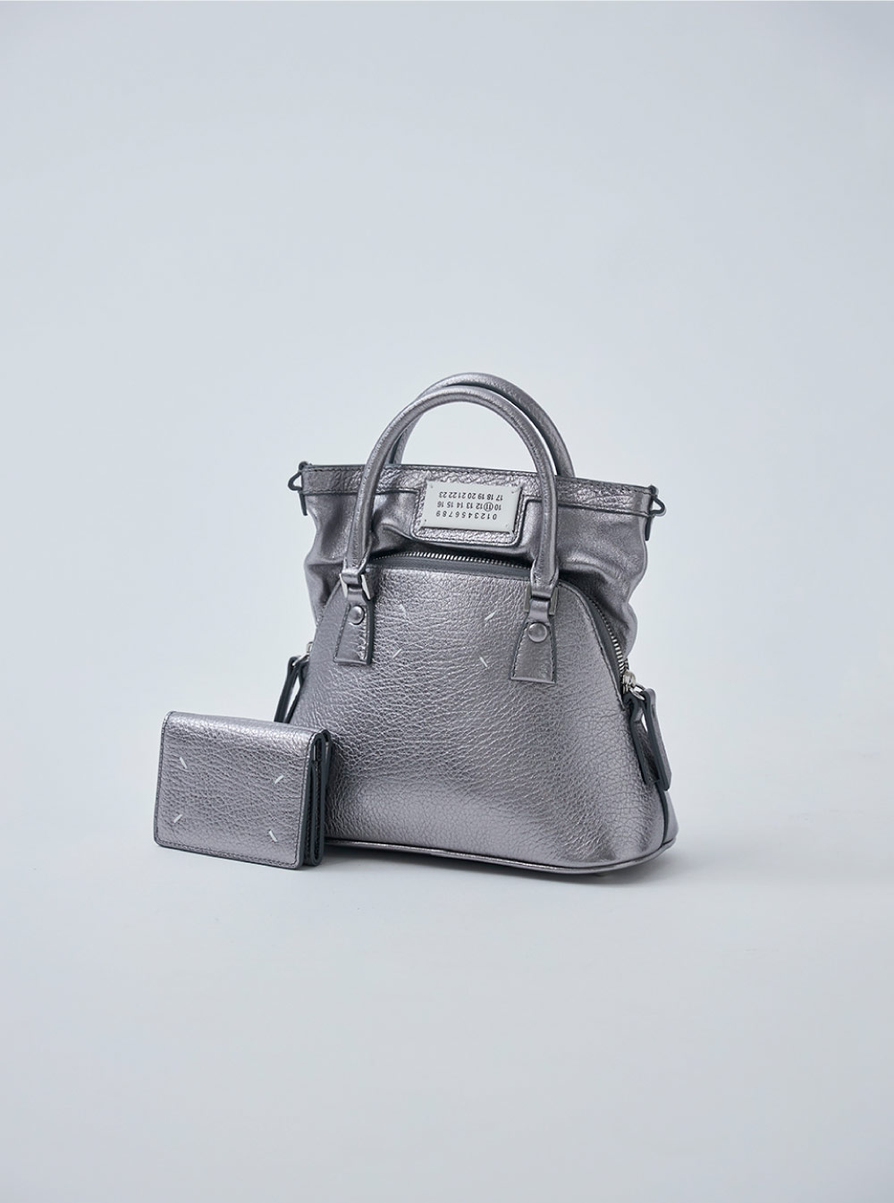 今シーズン限定のカラー「メタリックグレー」の“5AC”クラシックマイクロとポケットウォレット。縁はレザーと同色でハンドペイントしており、職人技が光るディテールも必見。