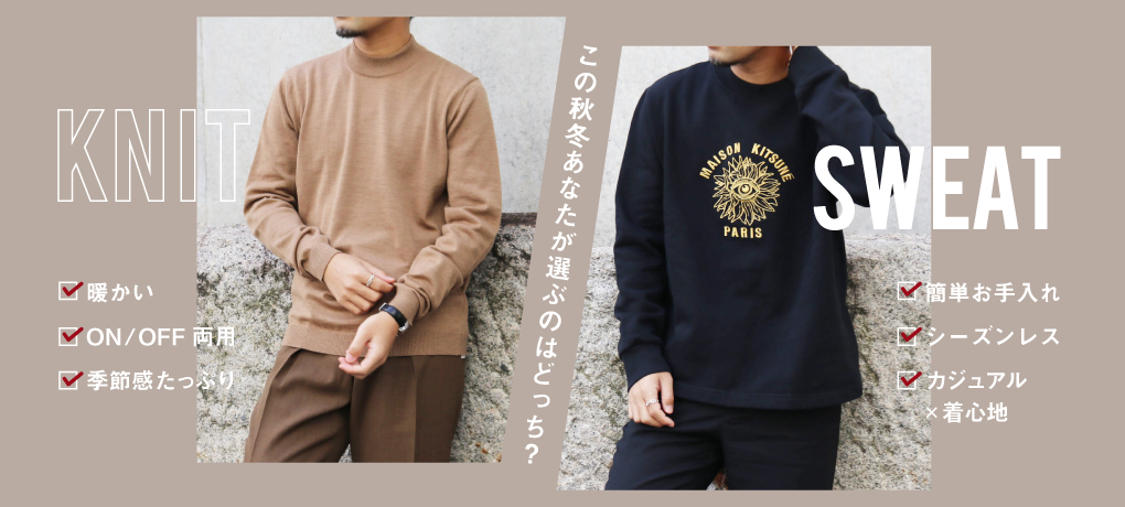 今回はニット派とスウェット派にわけて、今季おすすめのアイテムをご紹介!