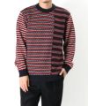 編み柄をパッチワークのように組み合わせたニットプルオーバー。過去の開発編地のアーカイヴスから着想を得ています。素材はあえて目面が綺麗すぎないアルパカ混の糸を使用、またウェーブ形状の糸とのコンビネーションにより、ヴィンテージ感のある風合いに。
