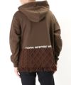 バックにはアランニットを切り替えで配し、切り替え位置に入った「THINK REFORE WEAR」のプリント共にアクセントポイントに。