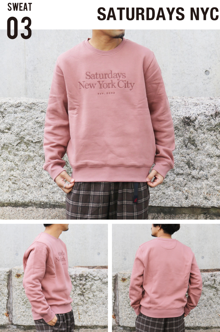 サタデーズの代表的な定番ロゴでデザインされたクルーネックタイプのスウェット。厚みはあるが軽量感のある素材を使用、裏起毛で暖かく着用できゆったりとしたシルエット、ふんわり柔かく着心地抜群。