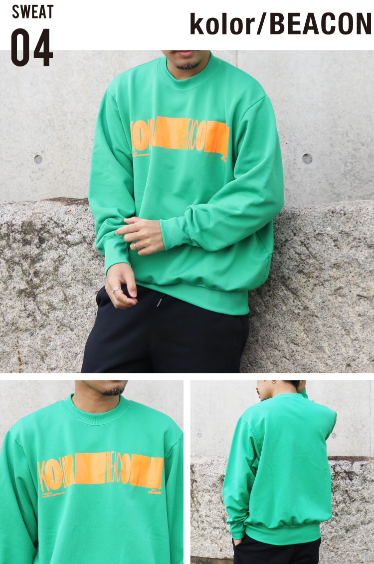 鮮やかなグリーンが目を惹くプルオーバースウェット。