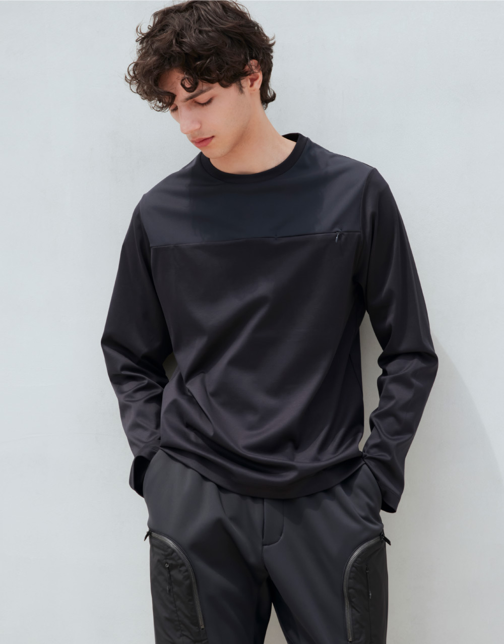 ハイグレードな素材を使用し、さりげない切り替えデザインを配したロンTは、大人のワードローブに欠かせないアイテム。着用頻度を考慮し、耐久性のある生地をチョイス。コンシールファスナーのアクセントがポイント。