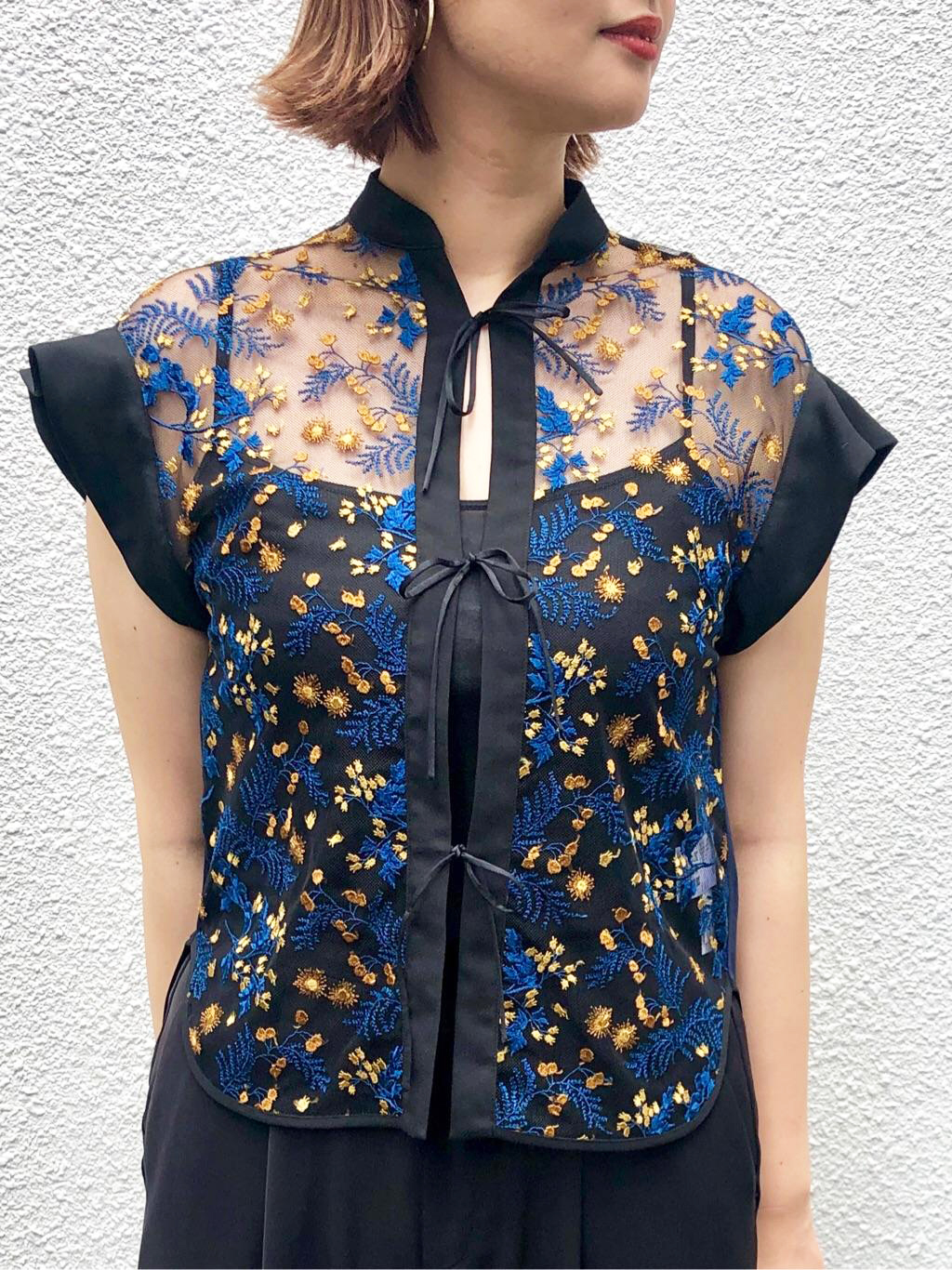 小花柄なモチーフのチュールレースを贅沢に使用したトップス。