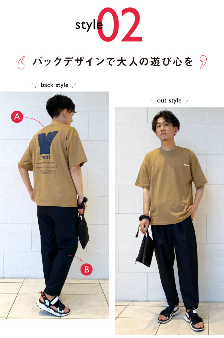 バッグやシャツの着こなし方でキレイめにも、ストリートにも着回せる万能さも魅力です。