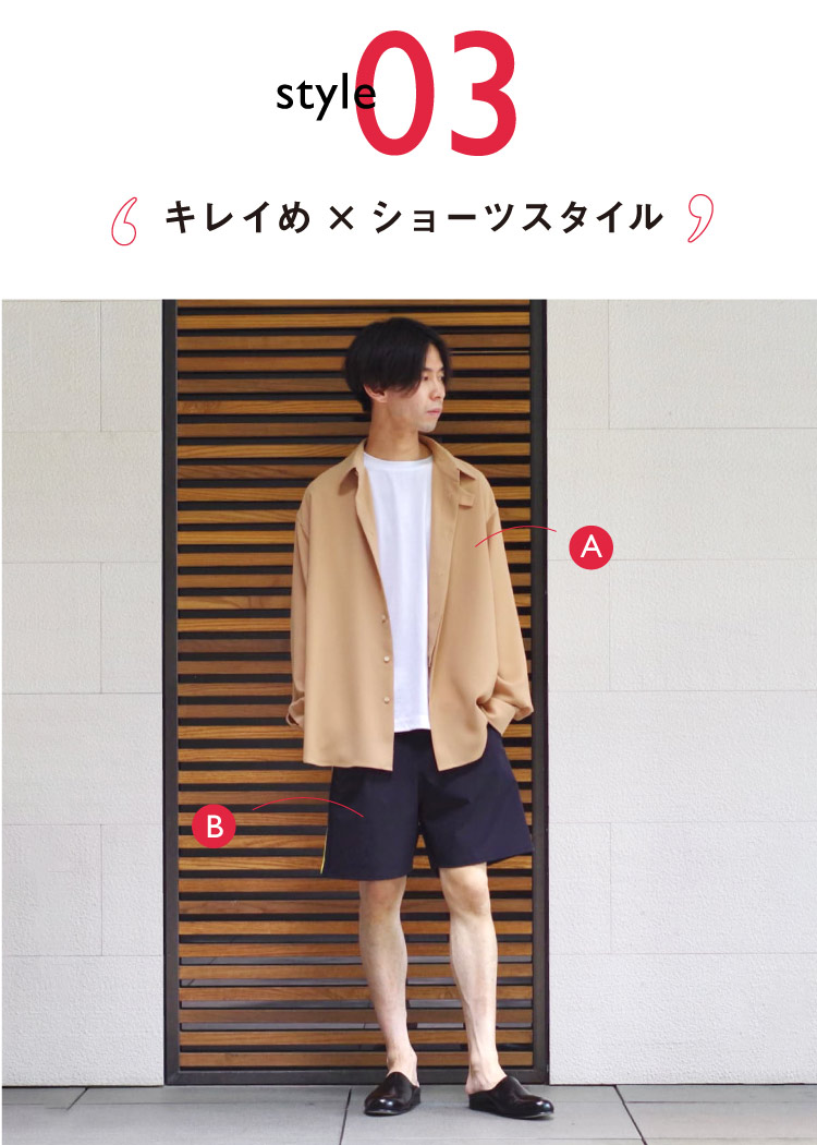 デザインシャツ、デザインショーツで個性を持ったスタイリング。