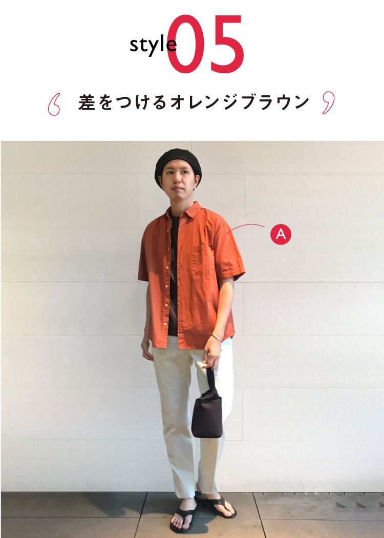 シンプルなデザインなので定番的に使いやすいアイテムこそ、人と差をつけるカラーオレンジブラウンのカラーに挑戦。