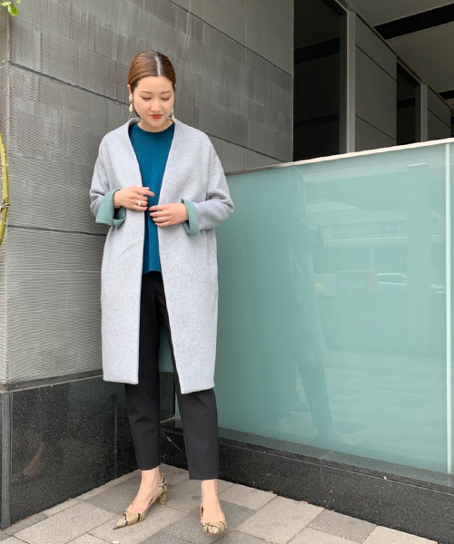 華奢な部分である、首・手首・足首を見せたコーデでバランスよく。エンフォルドらしいカラーブロッキングが目を惹きます。ジャケット感覚で羽織れる柔らかく軽い名品コートは、早い時期から長く着用いただけます。