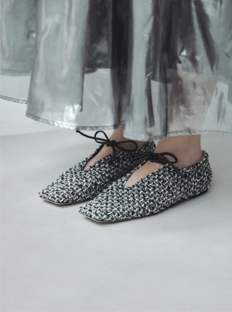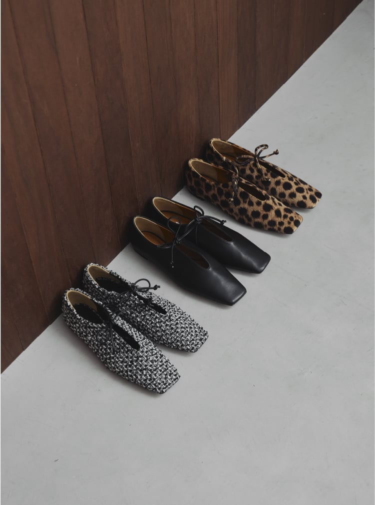 春夏に人気のアンバーココを、秋冬にも楽しめるよう、両サイドをクローズさせたリデザインにより誕生した新型アンバープレインを素材別注。マテリアルは、リントンツイード、ブラックソフトレザー、レオパードの3種類。履きやすさ、合わせやすさはそのままに、日常の中でトキメキや高揚感をお届けできたらと願います。