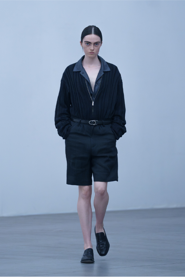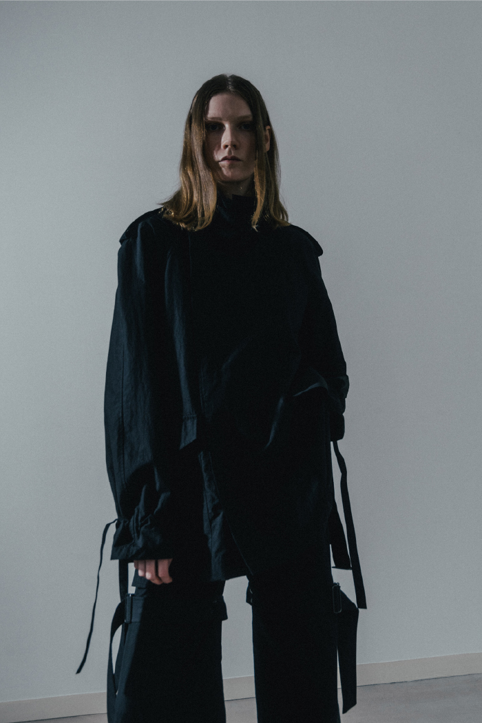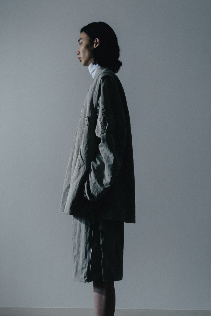 東京ファッションアワード2025で受賞ブランドに選ばれ、勢いに乗るタム。2025年春夏コレクションでは、ブランドの得意とするセットアップを中心に、ミリタリーディテールを取り入れた独自のスタイルを展開している。洗練されたシルエットと機能性が融合したアイテムは、カジュアルからフォーマルまで幅広いシーンで活躍。