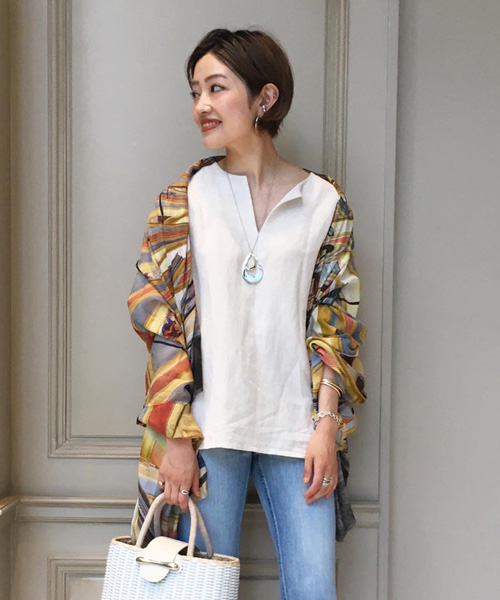 シンプルなコーディネートに合わせるだけで、着こなしが一気に夏らしく。