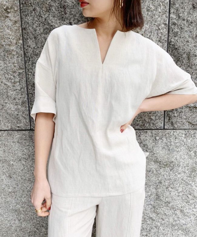 着回し力抜群のシンプルなリネンアイテムは、セットアップとして着用できる3ピースをご用意。