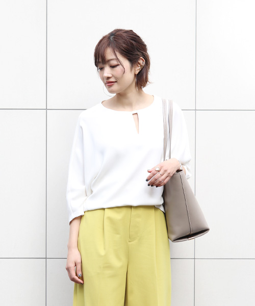 デイリーにも着回せるブラウスは、ご自宅で手洗いでき、しわにもなりにくい機能素材。とろみ感のある生地が上品な印象も与えてくれる優秀ブラウスです。