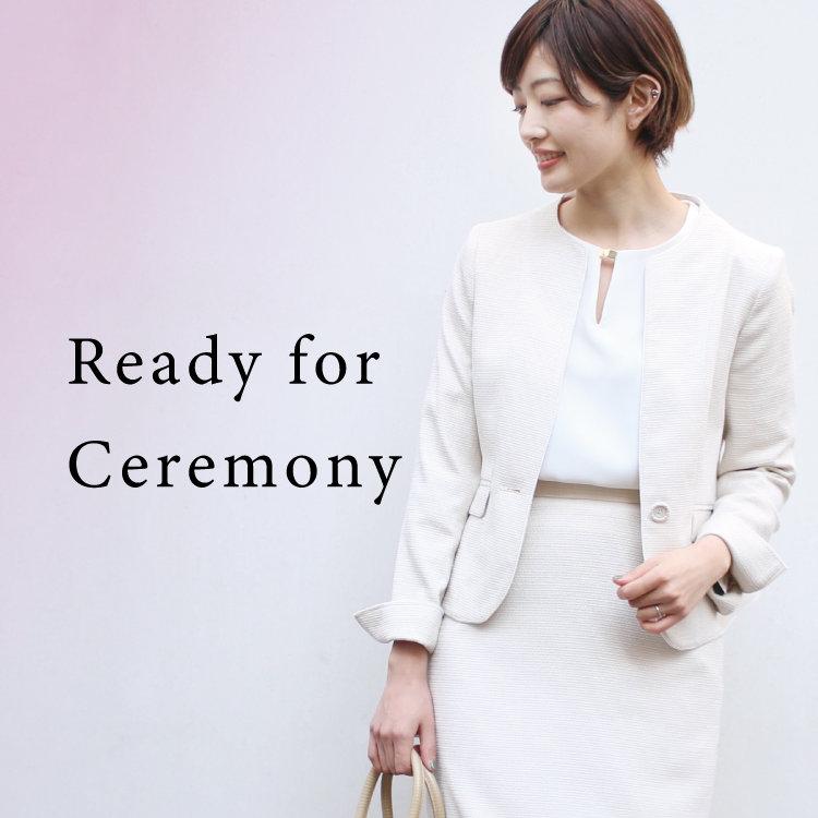 ハレの日スタイルにはもちろん、お仕事のジャケットに合わせても◎。インナーは、ハレの日以外にも着回せるアイテムを賢く選んで。