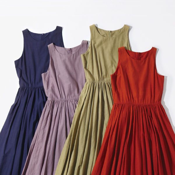 リネンの風合いがナチュラルでリラックス感のあるマキシワンピース。