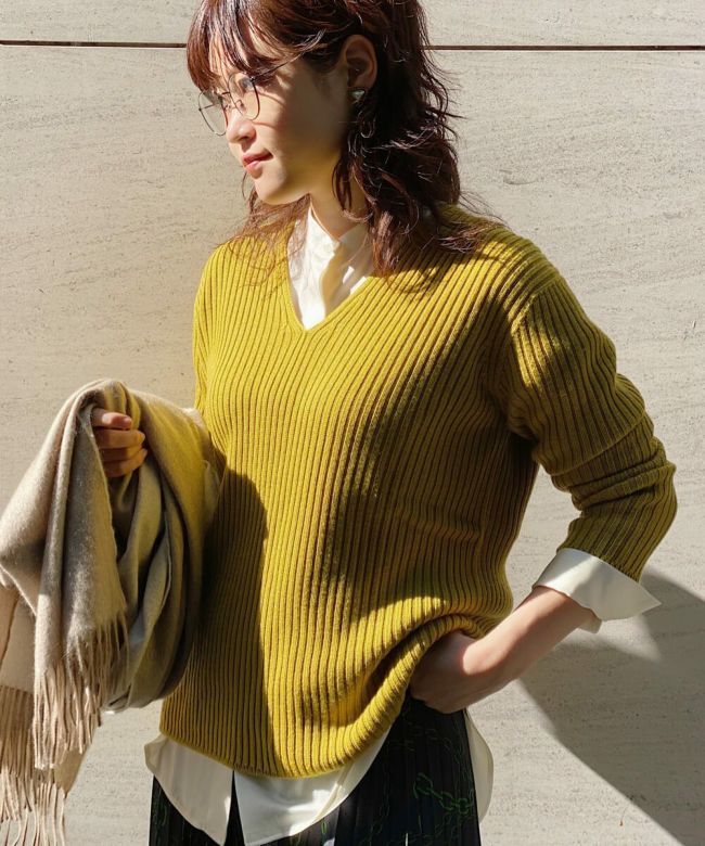 ネイビーやブラック、ホワイトと合わせてクリーンな印象に。