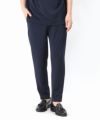 清涼感を感じさせる麻調の表情を持つ生地には シックなシャドーストライプが施されています。 ゆったりとしたシルエットながらも、短めの丈感がポイント。ボトムスはゆったりとしたヒップ・ワタリから裾口に向けて落ちる美しいシルエット。リラックスした着用感ながらもエレガンスを感じさせるセットアップです。