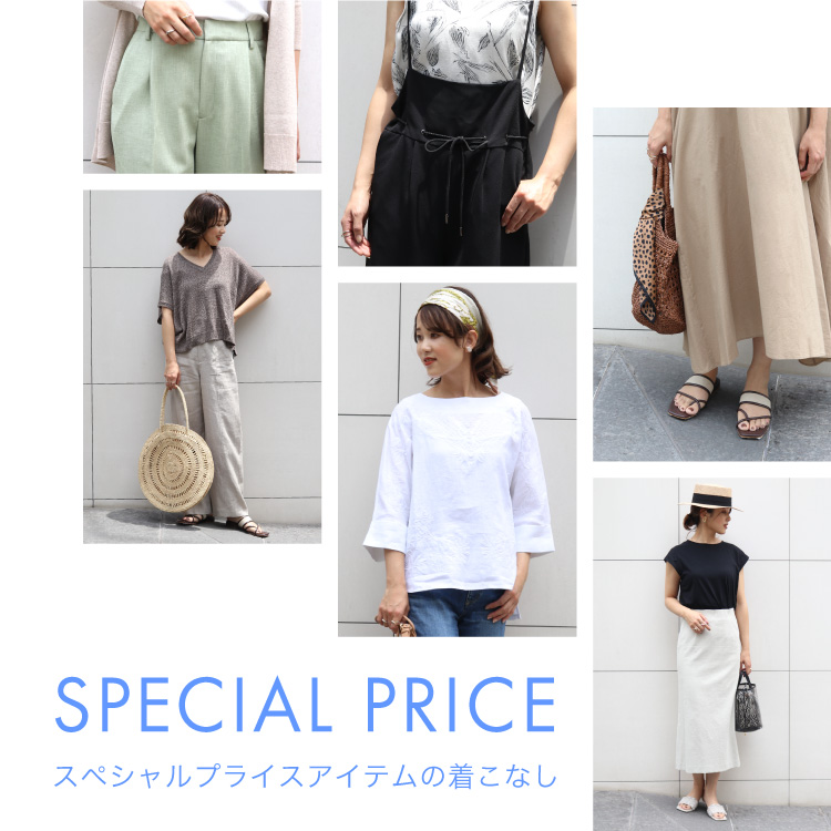 春夏アイテムが一足先にプライスダウン! パリゴレディース全店・パリゴオンラインにてスペシャルプライスを開催中! 今回は、お得にゲットできるスペシャルプライスアイテムの夏の着こなしをご紹介。