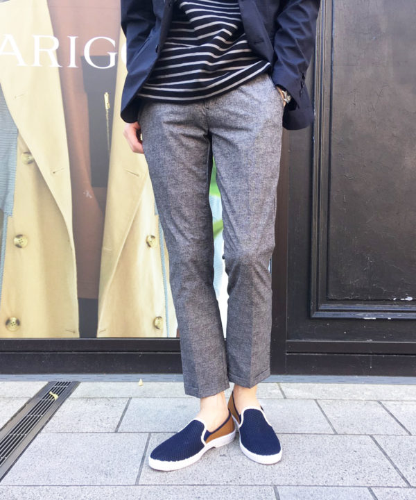 正統派なきれいめデザインを求めながらも、生地の軽快さ、ウエストがやや伸縮するなど、これからの季節の履き心地も抜群です。