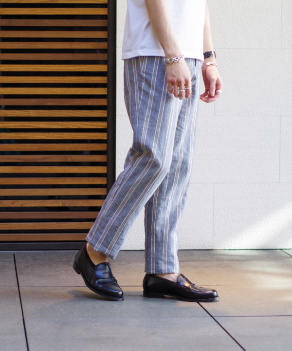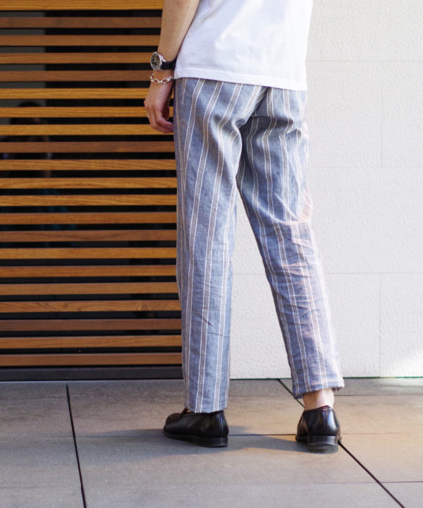 スラックスが大人気のブランドからリネンイージーパンツが入荷。